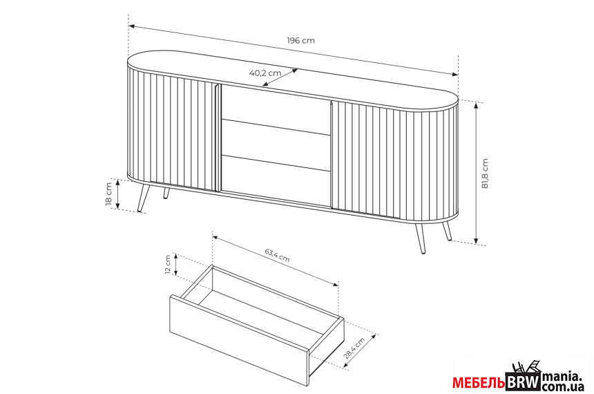 - Габариты (Д × Г × В): 196 × 40 × 81 см