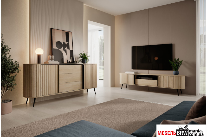 - Вместительный двухдверный комод Lovi 2D3S/196 от Perfect Home имеет два просторных отделения с дверцей и три вместительных ящика, легко двигающихся по телескопическим направляющим.