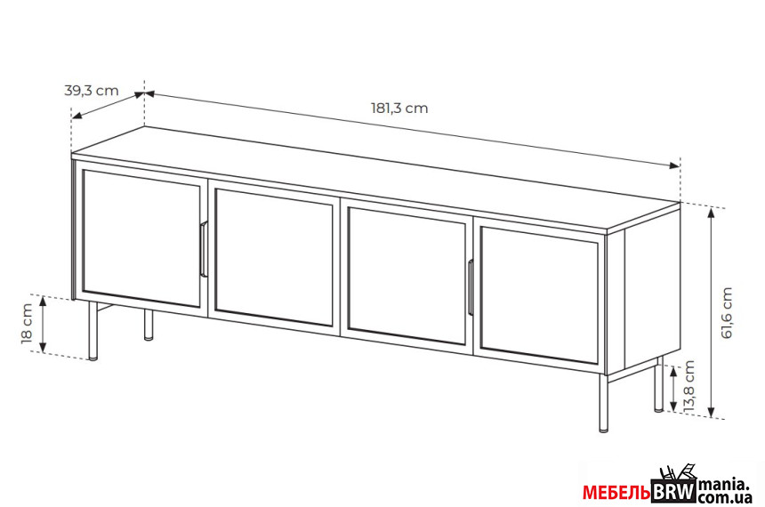 Описание: Тумба под ТВ с подсветкой Perfect Home Луми / Lumi 4D/181 4-дверная Дуб дунин