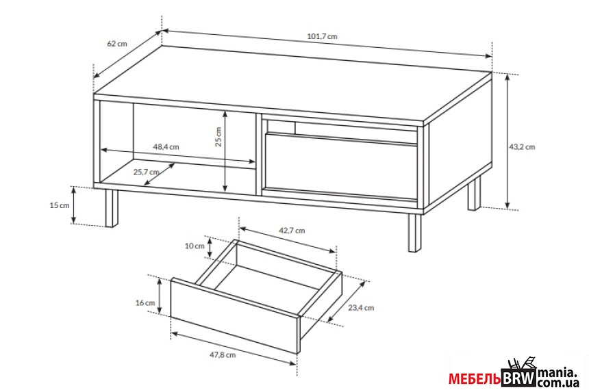 - Максимальная нагрузка На полку 5 кг, На ящик 2 кг