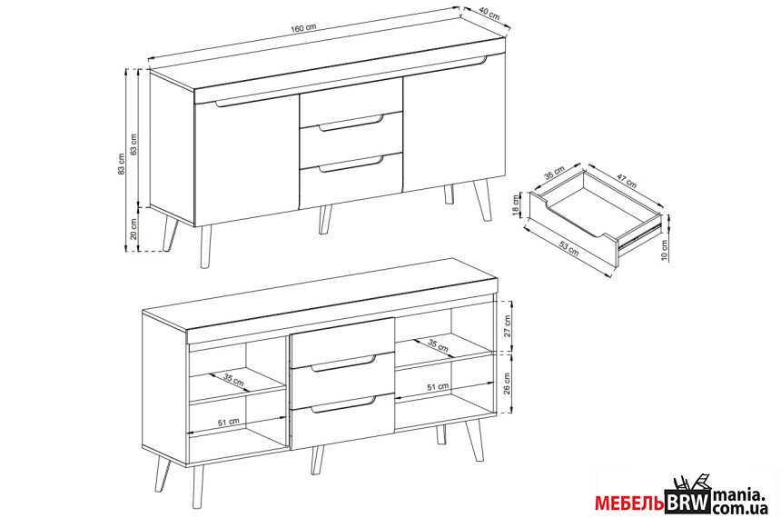 Описание: Комод Norven 2D3S/160 2-дверный с 3 ящиками