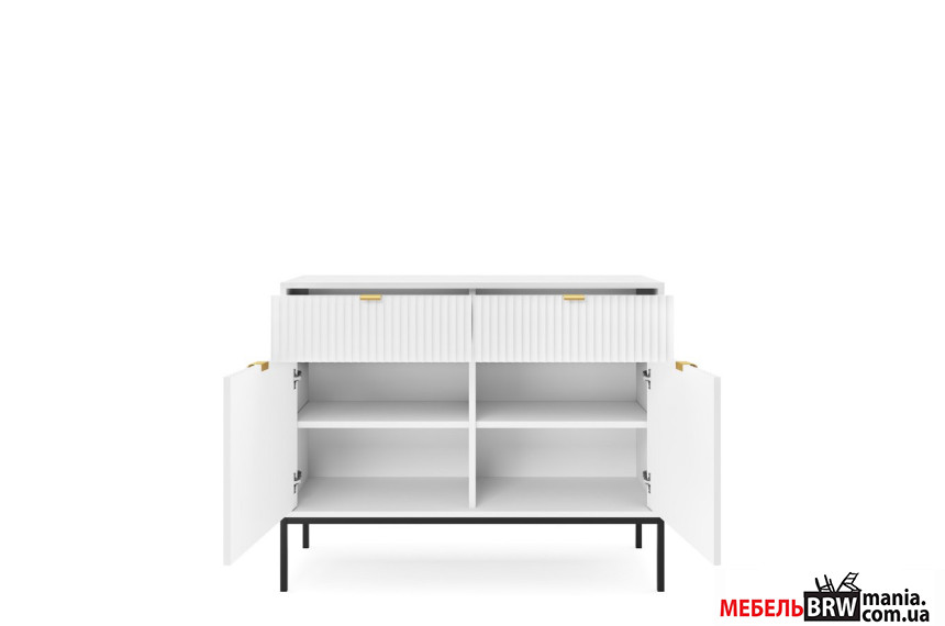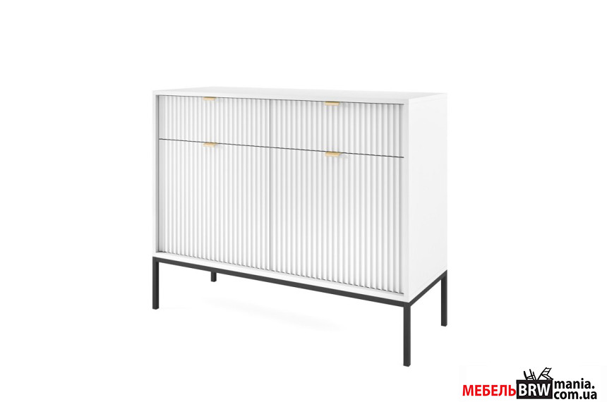 Описание: Комод Perfect Home Нова / Nova KSZ104 2-дверный с 2 ящиками и черными ножками Белый