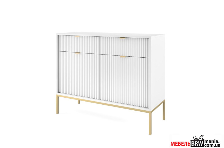 Описание: Комод Perfect Home Нова / Nova KSZ104 2-дверный с 2 ящиками и золотыми ножками Белый