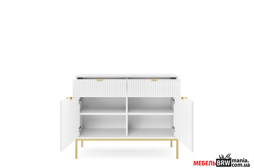 Комод Perfect Home Нова / Nova KSZ104 2-дверный с 2 ящиками и золотыми ножками Белый