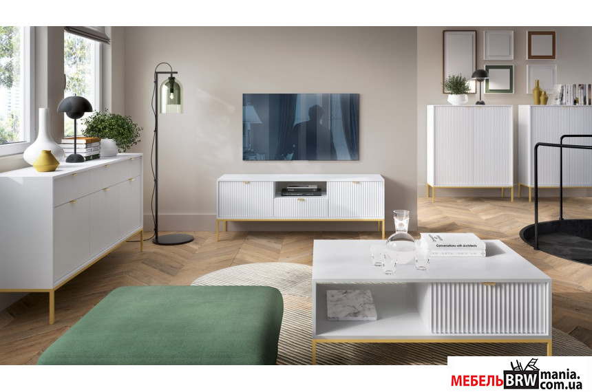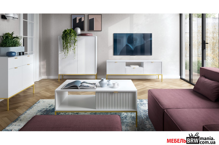 Комод высокий Perfect Home Нова / Nova K104 2-дверный с золотыми ножками Белый