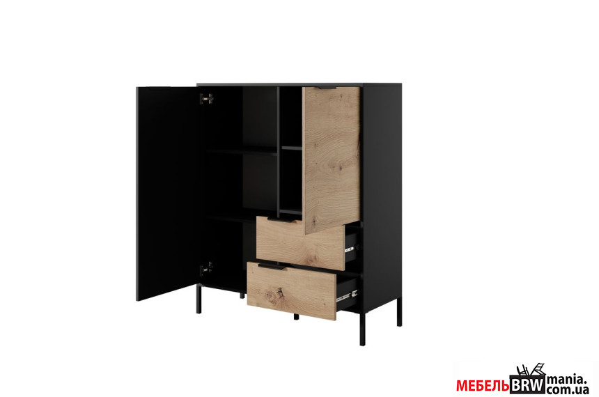 Комод Perfect Home Рейв / Rave 2D2S/104 2-дверный с 2 ящиками Черный/дуб артизан