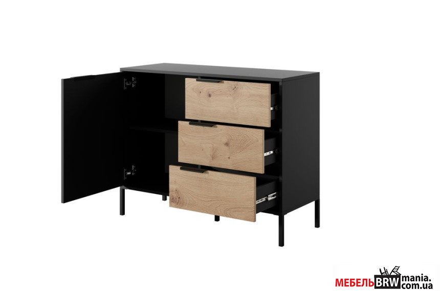 Описание: Комод Perfect Home Рейв / Rave D3S/104 1-дверный с 3 ящиками Черный/дуб артизан
