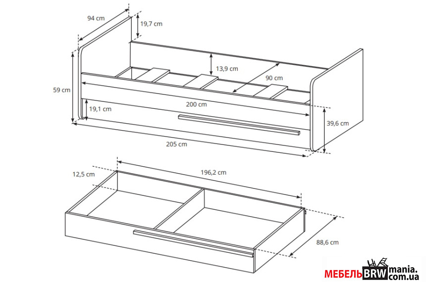 - Размер спального места 90х200 см