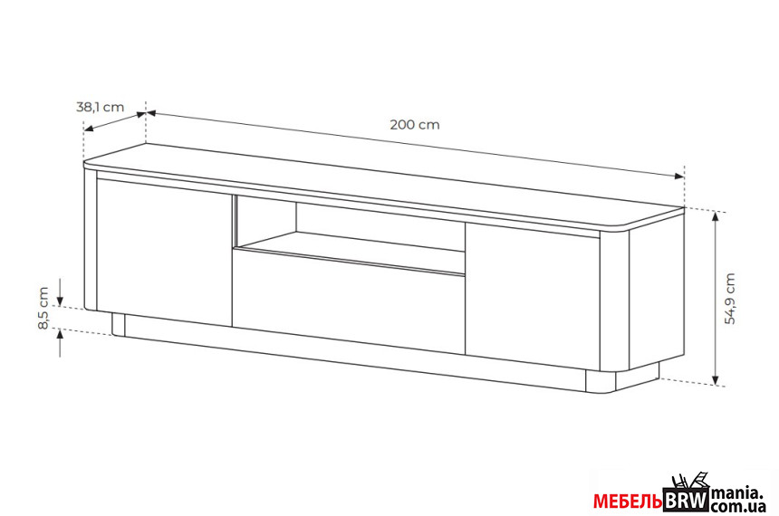 Описание: Тумба под ТВ Perfect Home Торро / Torro 3D/200 3-дверная Дуб кремона/черный
