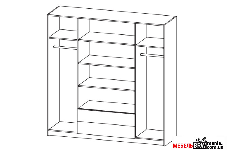 Описание: Шкаф платяной Sega 4D2S/200 4-дверный с зеркалом Графит/белый