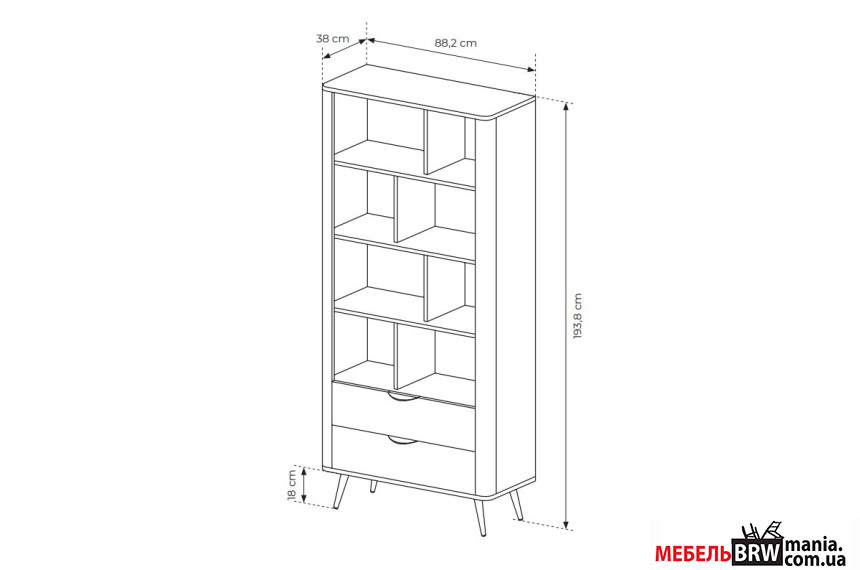 Стеллаж Veris 2S/88 от польского бренда модульной мебели отличается стильным дизайном и станет идеальным решением для организации зоны хранения в гостиной, спальне или рабочем кабинете.
