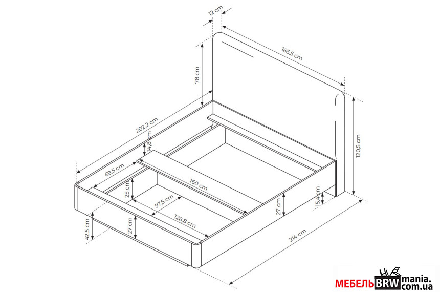 - Основание под матрас с подъемным механизмом 160х200 - опция с нишой для белья