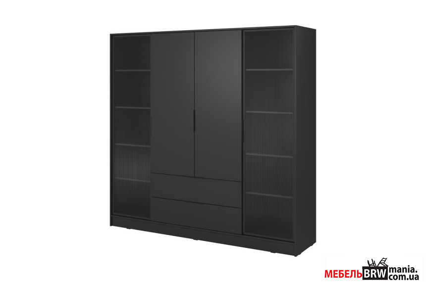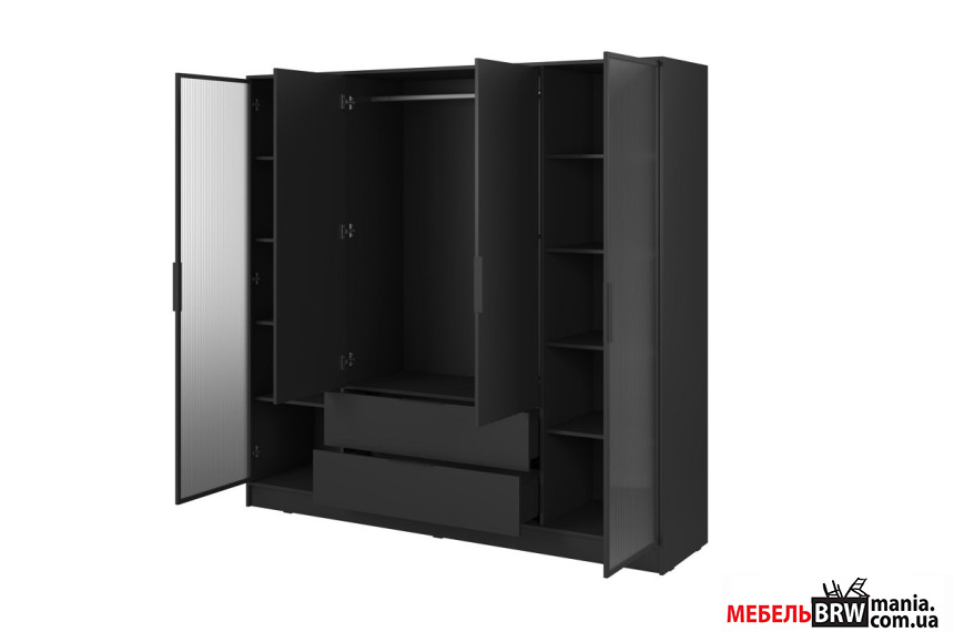 Гардеробная / шкаф платяной Келли / Kelly 4DRD Perfect Home 4-дверная с боковыми прозрачными дверями Черный
