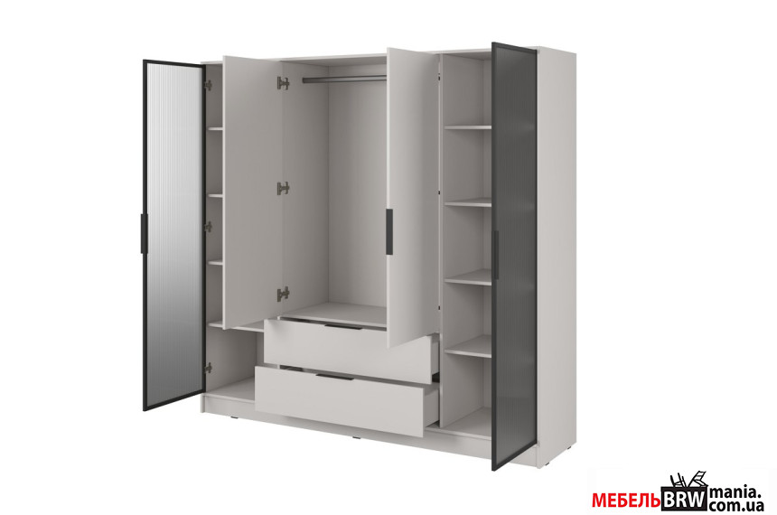 Гардеробная / шкаф платяной Келли / Kelly 4DRD Perfect Home 4-дверная с боковыми прозрачными дверями Кашемир