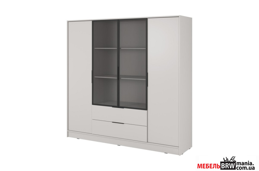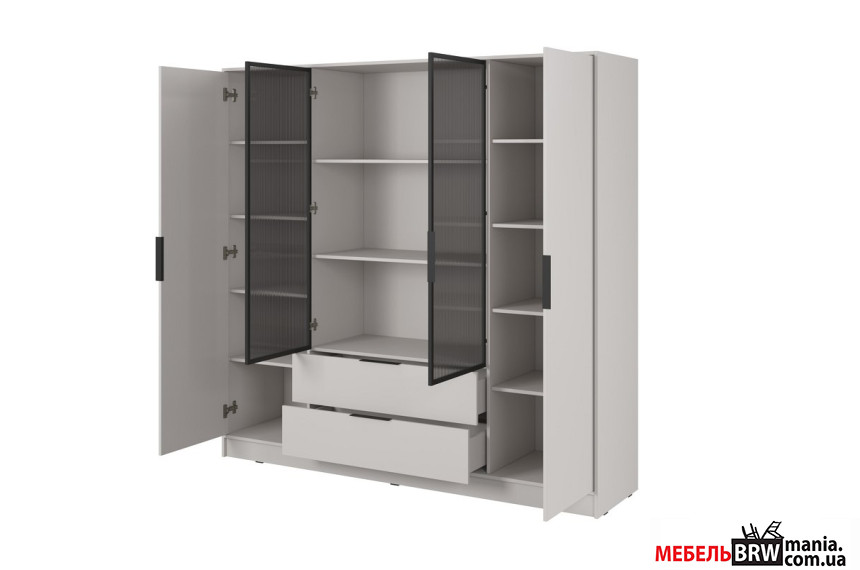 Гардеробная / шкаф платяной Келли / Kelly 4DRM Perfect Home 4-дверная с центральными прозрачными дверями и дополнительными полками Кашемир