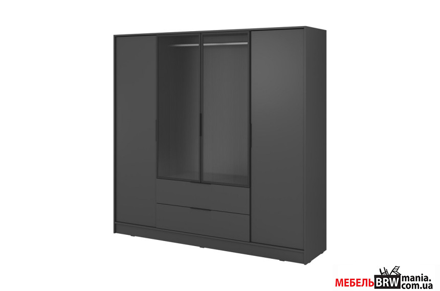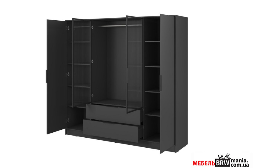 Гардеробная / шкаф платяной Келли / Kelly 4DRM Perfect Home 4-дверная с центральными прозрачными дверями и реей Графит