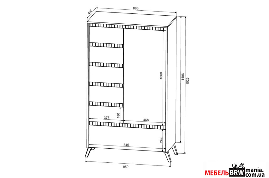 - Комод (Д×Г×В) – 85×45×152 см.