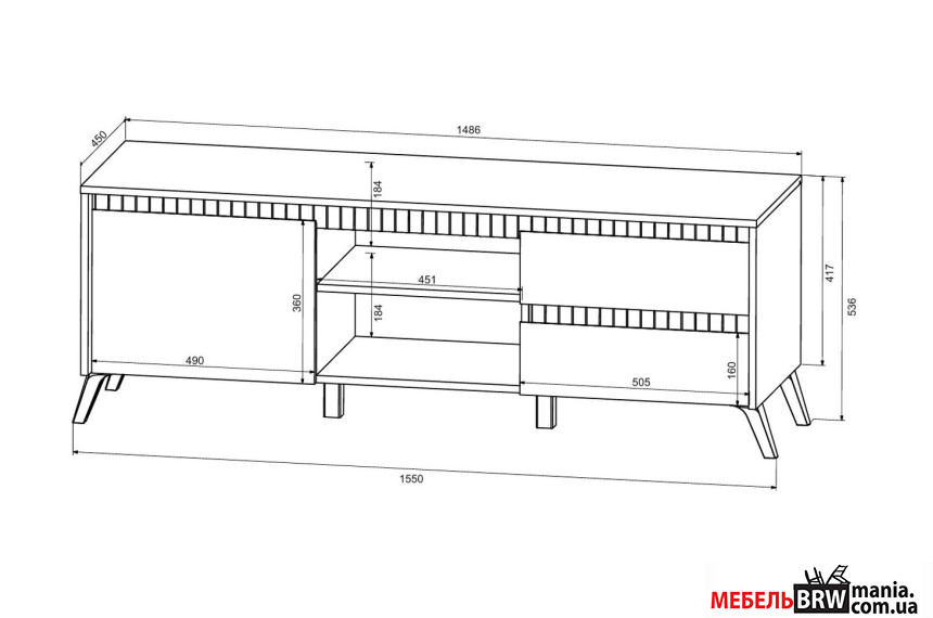 - Тумба под ТВ (Д×Г×В) – 155×45×54 см;