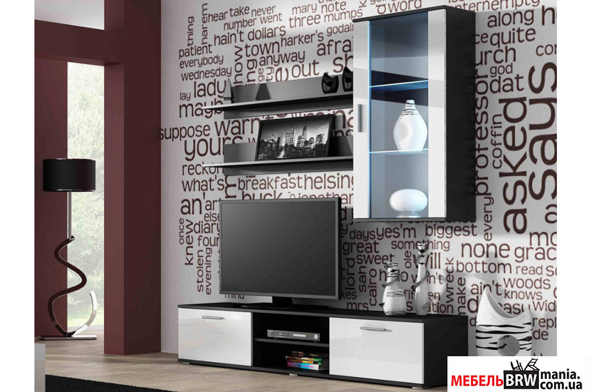 тумбу под телевизор и две полочки. Простая и комфортная мебель с плавными и