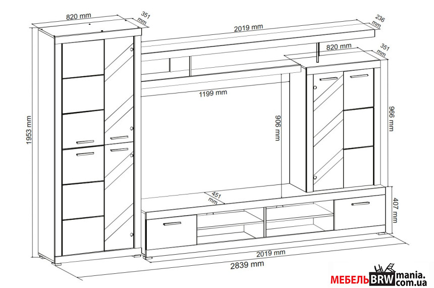 - Размер модулей Тумба под ТВ – Д-202 Г-45.1 В-40.7; Витрина высокая – Д-82 Г-35.1 В-195.3; Витрина низкая – Д-82 Г-35.1 В-99.6; Полка – Д-202 Г-23.6