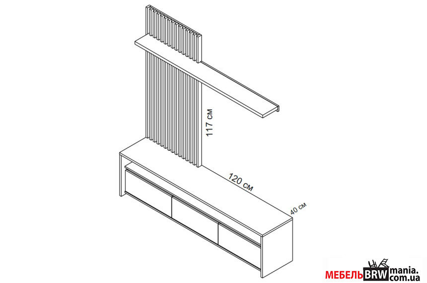 - Дополнительные размеры Высота от тумбы до полки 117 см