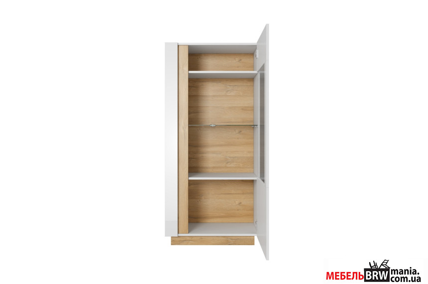 - Витрина высокая Perfect Home Арко / Arco 1D1W/60 1-дверная Белый глянец/дуб грандсон