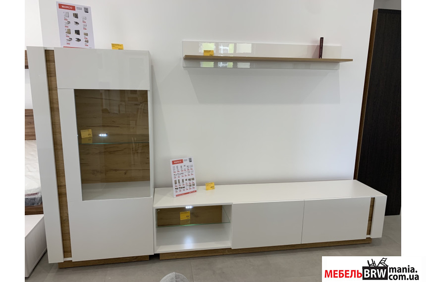 - Размер модулей Витрина высокая - Д-60 Г-40 В-194; Витрина низкая - Д-72 Г-40 В-154; Тумба под ТВ - Д-138 Г-40 В-46; Полка - Д-138 Г-20 В-20; Комод с витриной – Д-138 Г-40 В-90; Стол журнальный – Д-100 Г-60 В-45