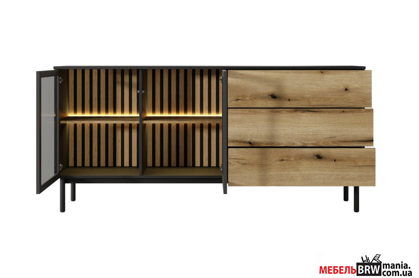 - Комод с подсветкой Perfect Home Ланг / Lang 2D3S/180 2-дверный с 3 ящиками Черный/дуб эвок