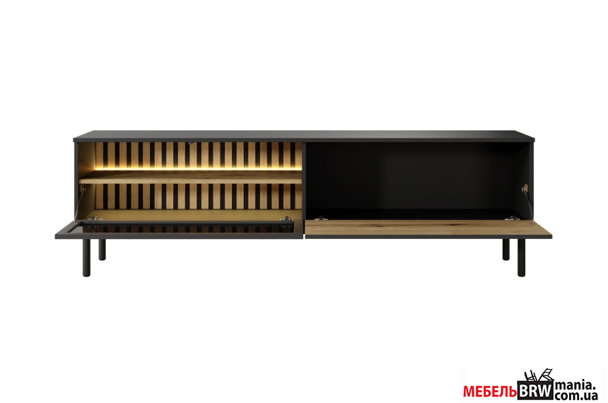 - Тумба под ТВ с подсветкой Perfect Home Ланг / Lang 2D/180 2-дверная Черный/дуб эвок