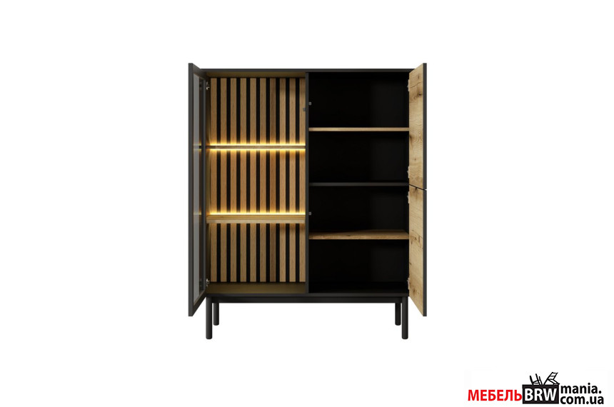 - Витрина низкая с подсветкой Perfect Home Ланг / Lang 3D1W/100 3-дверная Черный/дуб эвок