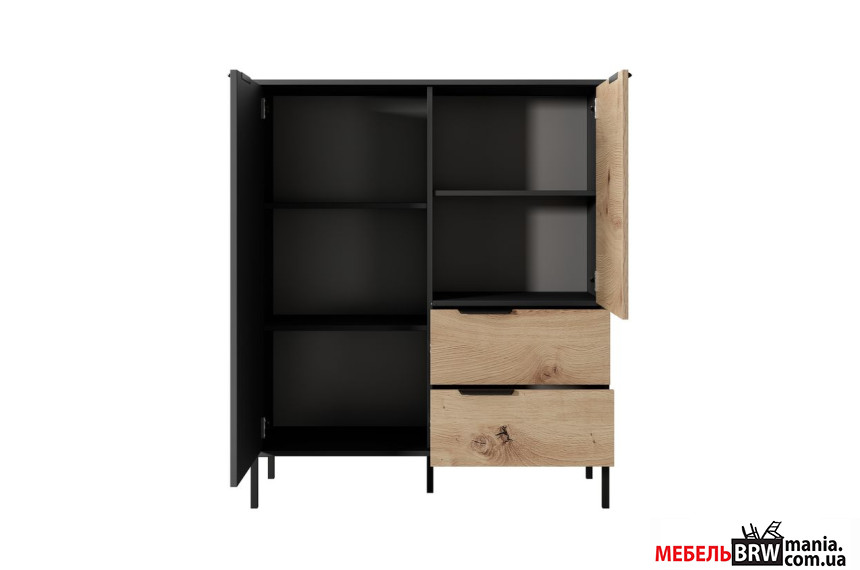 - Комод Perfect Home Рейв / Rave 2D2S/104 2-дверный с 2 ящиками Черный/дуб артизан
