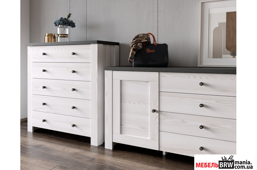Комод Антверпен / Antverpen KOM5S БРВ с 5 ящиками Ясень снежный/дуб мореный