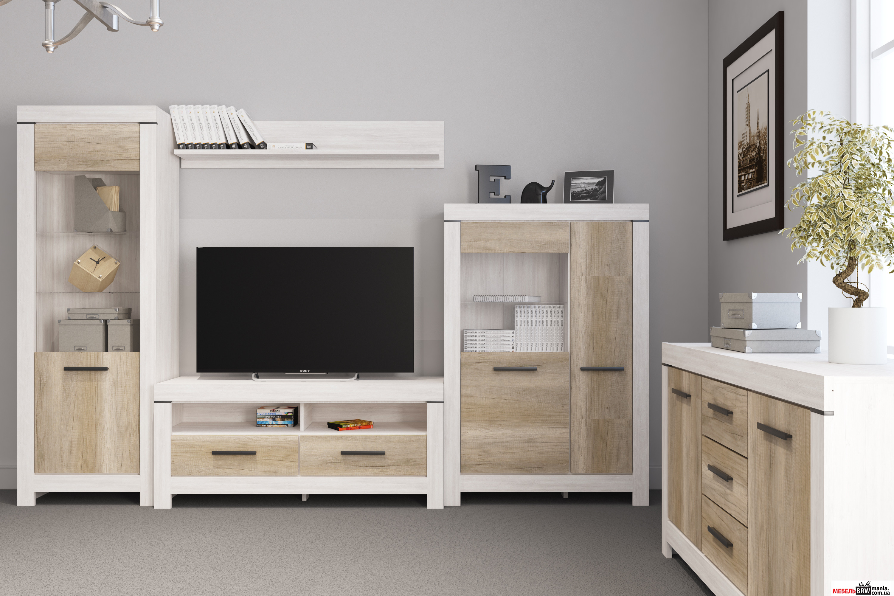 Коллекция БЕЛЕН СОСНА КАНЬЙОН/ДУБ КОРАБЕЛЬНИЙ точно справится с задачей преобразить ваш домашний уголок в гостиной. Интерьер