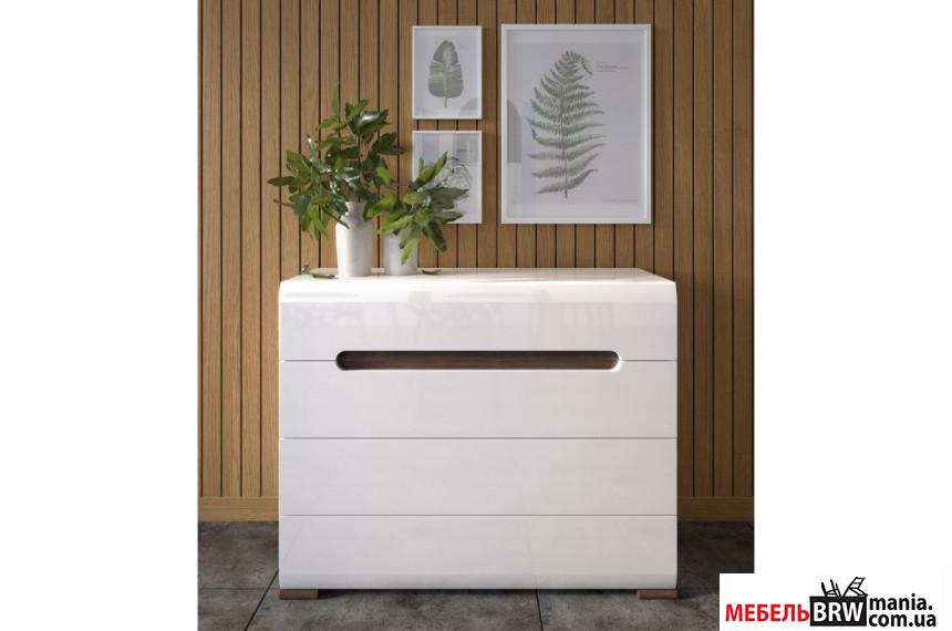 Описание: Комод Ацтека (Амелия) / Azteca Trio KOM4S/8/11 N БРВ с 4 ящиками Белый/белый глянец