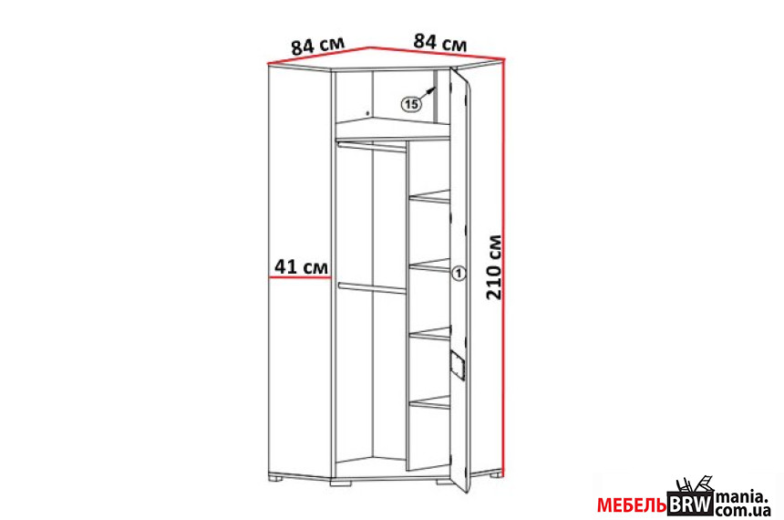 Думал, вместе с углом займет еще пол стены, но компактный шкаф, ничего не скажешь! Размеры 84,5-84,5-210 см, белый глянец красивый цвет. Самое главное, что выглядит очень красиво и по стилю никому не уступит!.
