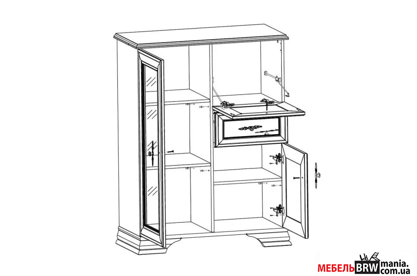 Описание: Витрина-бар Кентуки / Idento REG1W1D1S1B БРВ 3-дверная с 1 ящиком Белый альпийский