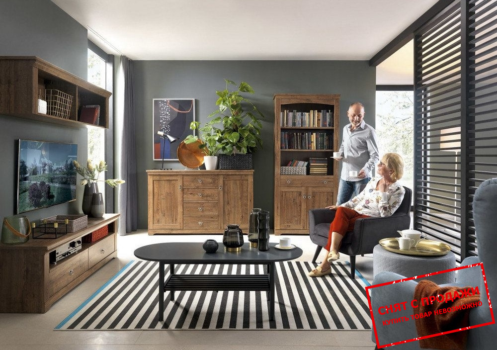 Система ПАТРИК/PATRIC – мебельный набор в гостиную. Систему модульного типа Patric изготавливает фабрика Gerbor. Производитель задействовал интересный дизайн с использованием насыщенного цвета «дуб техас», а также с предельно выраженным древесным орнаментом. Массивность формы, фасады с рамками, стилизованные ручки из металла в оттенке «античное серебро» – вот главные характеристики мебели из этой системы.