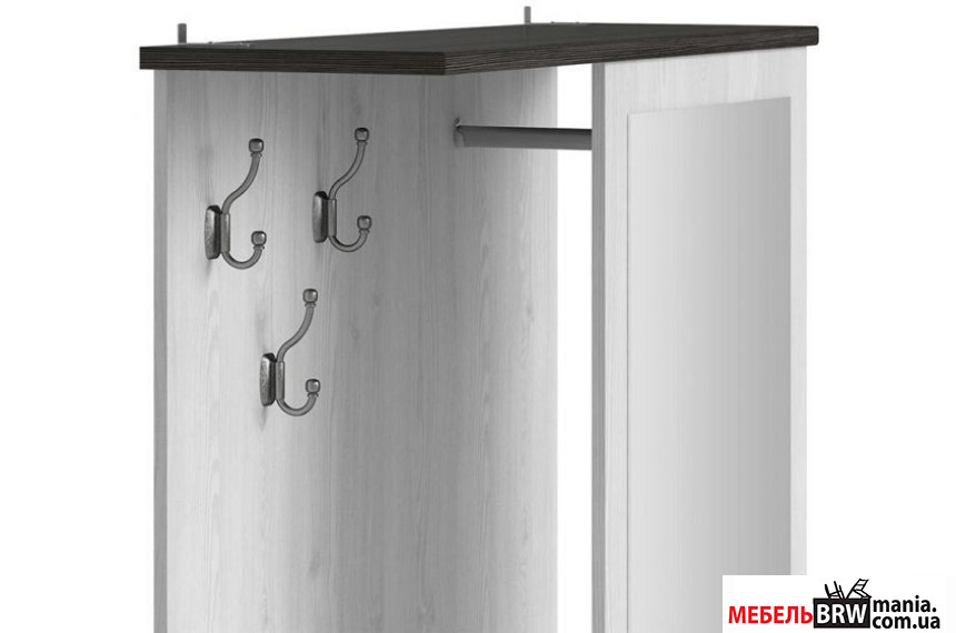 Прихожая производится в двух цветах – джанни (корпус) и сосна ларико (фасад). Такой тандем преимущественным образом влияет на внешний вид ультрасовременной мебели. Достаточные габариты мебели позволяют хранить все необходимые вещи – верхнюю одежду, головные уборы, обувь. Также в нашем распоряжении есть большое зеркало.