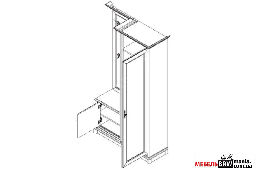 - Два вместительных отделения с глухой дверцей предоставляют достаточно места для хранение верхней одежды, обуви и головных уборов.