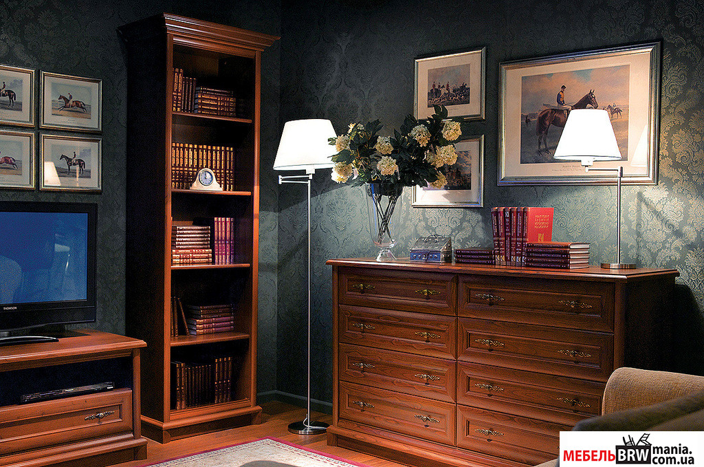 Красота дерева насыщенного шоколадного цвета, фигурные карнизы и цоколи, фацетованные зеркала и витрины, утонченные ручки – продукция, которая представлена в нашем магазине, буквально переносит вас на страницы классических произведений.