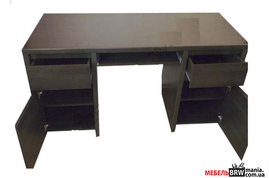СТОЛ ПИСЬМЕННЫЙ ДОРС DOORS HBIU_2D2S производства надежной фирмы BRW вызовет у вас полное доверие с первого дня его использования. Характеристика изделия радует изящностью используемой цветовой схемы – венге и качеством материалов – ЛДСП (корпус), сотовая ДСП (фасад). Этот изящный мебельный атрибут кроме интересной стилистики обладает несомненной функциональностью. Красивый дизайн удачным образом сочетается с практичностью. Два выдвижных ящика, вместительные тумбы, расположенные симметрично и подвижная полка под клавиатуру поспособствуют грамотному распределению пространства для необходимых в работе вещей. Купить стол не составит труда на нашем сайте. Цена изделия располагает к приобретению.