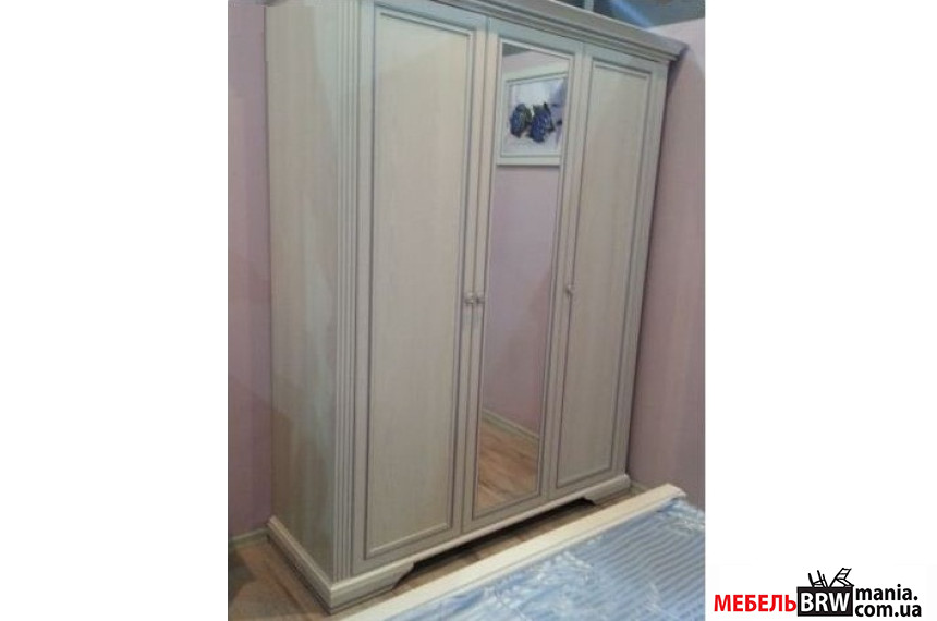 Описание: Шкаф платяной Вайт / White 3D2S Гербор 3-дверный с зеркалом Ясень снежный/сосна серебряная