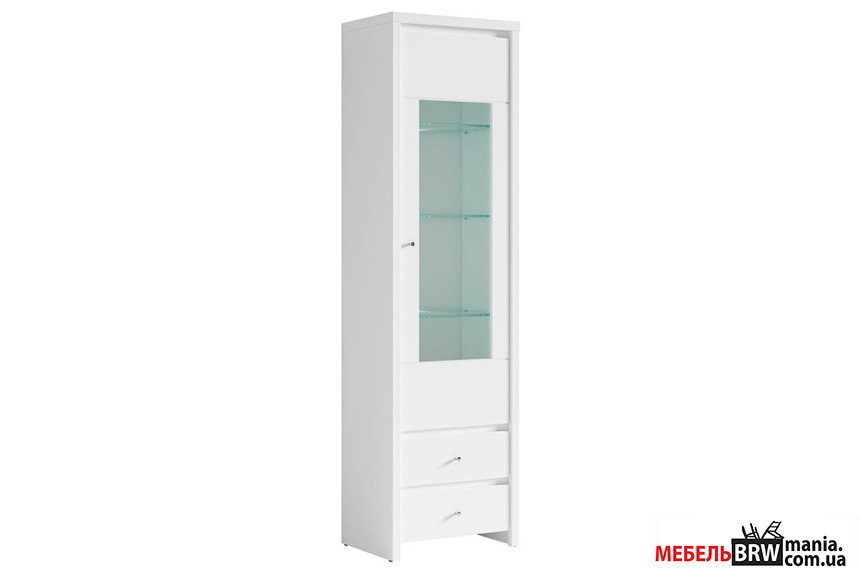 Витрина Кристина / Kristina REG1W2S (B) БРВ 1-дверная с 2 ящиками Белый/белый глянец
