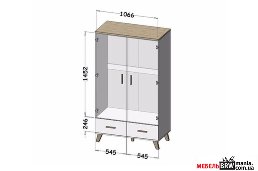 Описание: Шкаф платяной Cama Lotta 120 2D2S 2-дверный Дуб вотан/черный