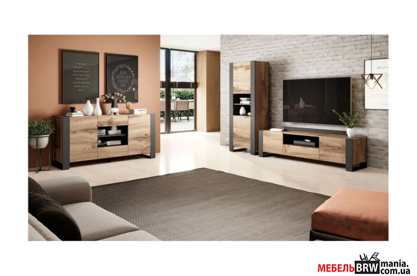 Описание: Витрина Cama Wood 2-дверная Дуб вотан/антрацит