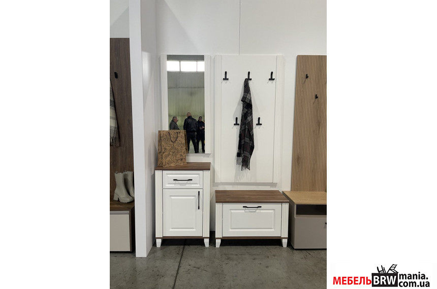 - Размер модулей Тумба для обуви – Д-75.1 Г-37 В-50.4; Тумба – Д-55.1 Г-36 В-83.6; Вешалка - Д-75 Г-2.7 В-144; Зеркало Д-55 В-110