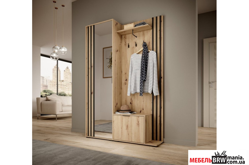 Прихожая с зеркалом Perfect Home Нелли / Nelly 2-дверная Дуб артизан/черный