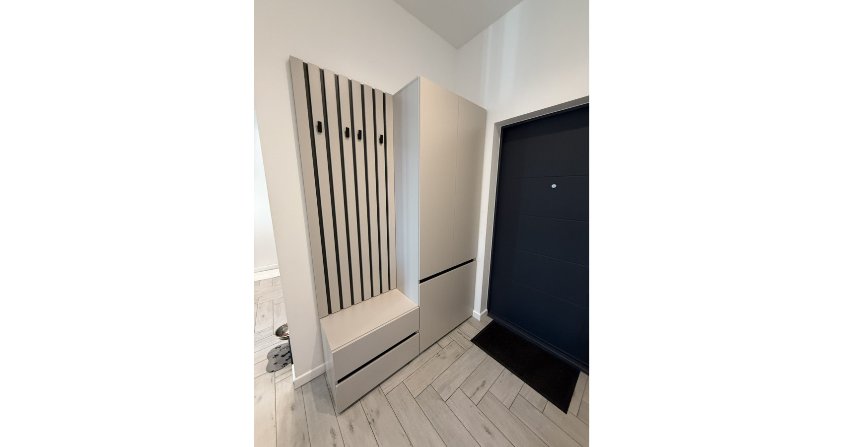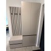 Замовили в коридор набір Лондон - шафа, тумба і вішак. Дуже сподобалось, як виглядає в живу - стильний, колір кашемір з чорним реально сучасний. Шафа вмістка, двері відкриваються легко, є рейка для вішаків. Тумбочка з шуфлядами зручна, направляючі добрі - висуваються повністю і тихо. Вішак теж міцний, гачки нормальні, не люфтять. В цілому якість гарна, зібрали без проблем. Вийшло акуратно і красиво, ми задоволені