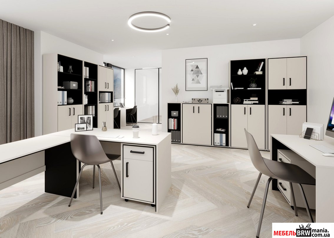 Система PRIME идеально подходит для тех, кто стремится организовать рабочее пространство со вкусом. Благодаря скандинавскому стилю с минималистическими акцентами, мебель выглядит стильно, сдержанно и одновременно современно. Сочетание цветов «кашемер» и «черный» создает благородный контраст, подходящий как для домашнего интерьера, так и для небольшого офиса. Эти оттенки гармонично дополняют любой интерьер, создавая атмосферу порядка, покоя и сосредоточенности.