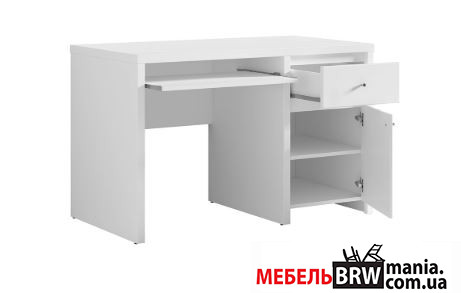 Стол компьютерный, письменный Кристина / Kristina BIU1D1S120 (B) БРВ 1-дверный с 1 ящиком Белый/белый глянец